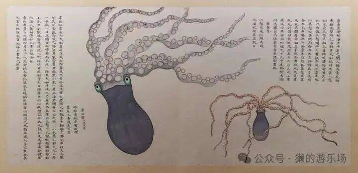 这是清代杭州人聂璜创作的一套海洋生物图谱,共收录了 336 种生物,既有真实存在的海洋生灵,也有 “潜牛”“鹿鱼” 这类传说中的奇幻生物。雍正年间流入宫廷,如今因呆萌的生物形象走红,成为本次分享中最广为人知的作品。