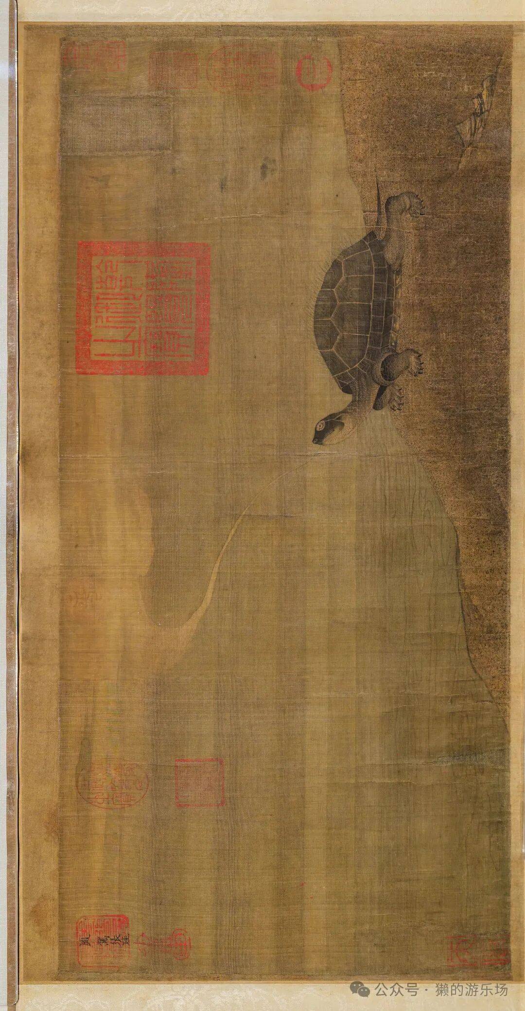张珪,金代宫廷画家,此画是他传世的唯一作品。画面中一只神龟昂首吐雾,祥云中托着一轮红日,日心藏有神秘字符,学界推测为 “寿” 字或道教符箓,整幅画用笔细腻,构思奇异。