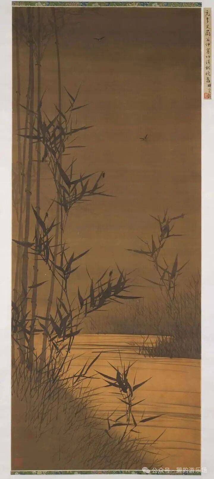 此画无款,被认为是文人画家李衎的作品。网上相关介绍寥寥无几。画面以鲜明对比绘河边修竹,水岸与河面的光影交错,仿佛能让人感受到日落时分的柔和光线,独特的光感与装饰性令人印象深刻。