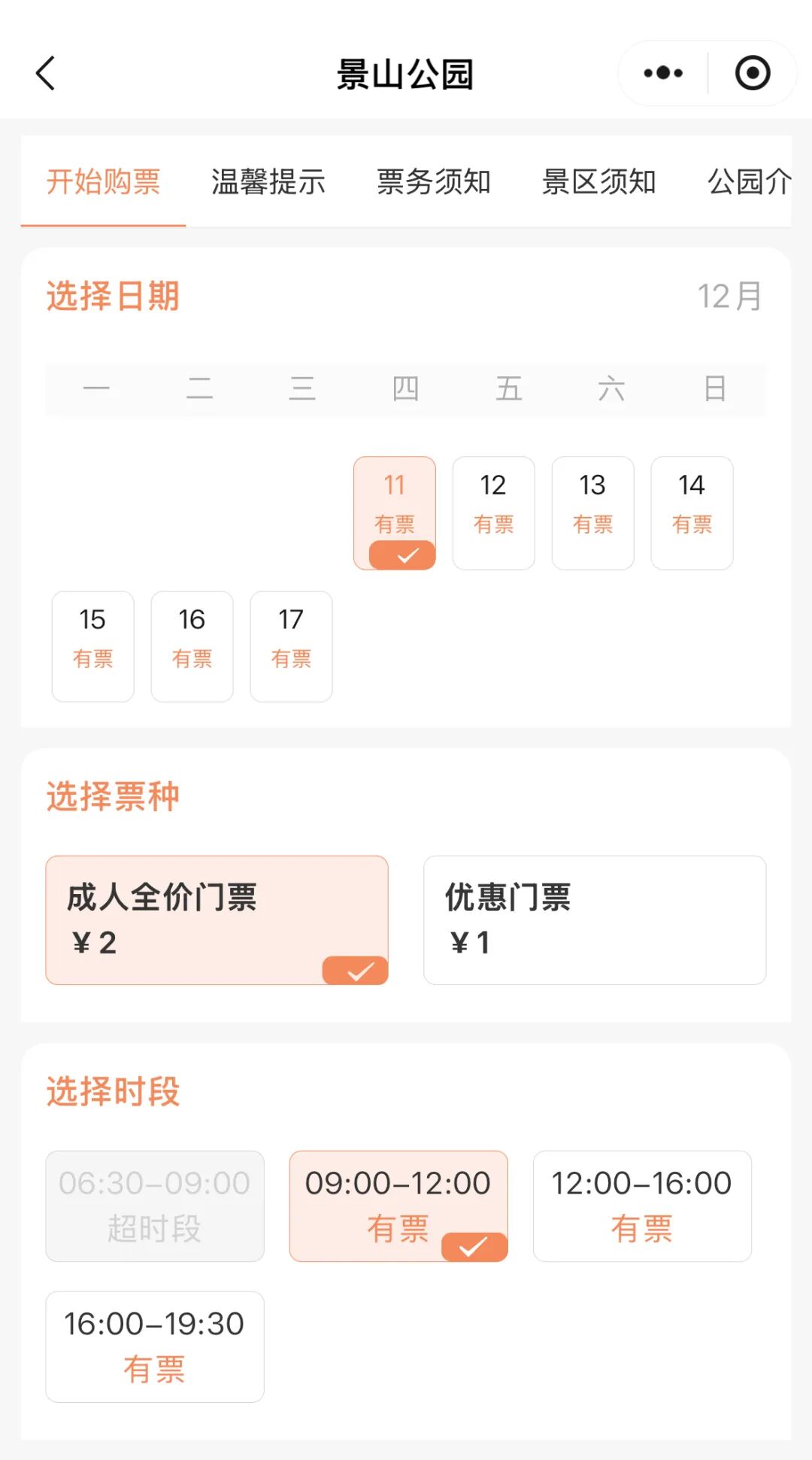距故宫步行不过十几分钟的景山公园,不仅可以远眺雪中故宫全景,而且更为重要的是,景山公园有票!且充足!