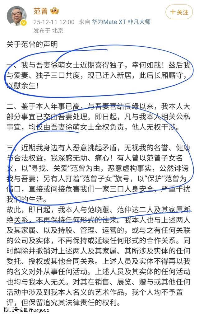 如今范曾突然官宣得子还断亲,明眼人都能看出来,这是要把所有资源都留给现任妻子和刚出生的小儿子啊。