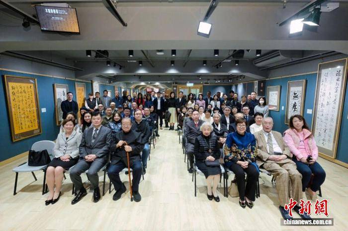 12月10日,“不随时俯仰——刘晓迎书法国际巡展(香港站)”在香港中环集古斋画廊开幕。图为嘉宾和观众合影。(主办方 供图)