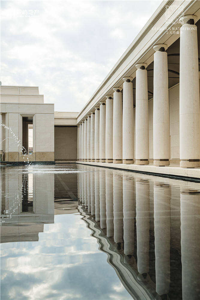 水面如镜,倒映着对称的廊柱与穹顶;米黄石材温润的肌理,在冬日的阳光下泛起丝绸般的光泽。没有喧嚣的符号堆砌,只有轴线、韵律与光在安静地对话——这让人想起伦敦切尔西区那些临河的老宅,外表低调谦和,内里却藏着数个世纪的艺术收藏与生活哲学。实景图