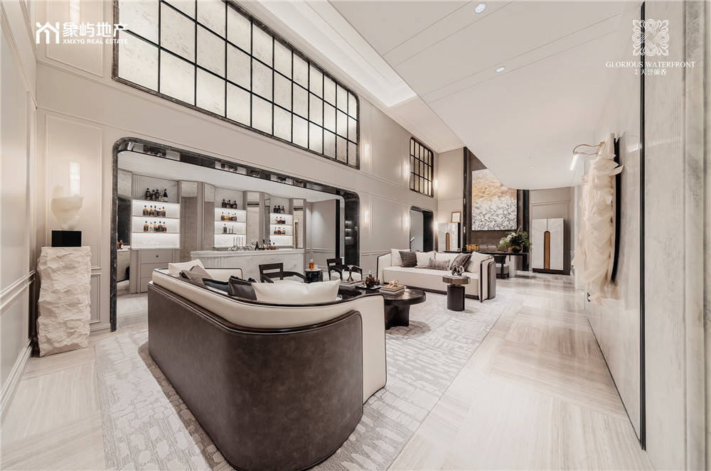 从轴线对称的仪式入口到严格按黄金比例规划的镜面水景,再到国际艺术家雕塑的静默融入,项目以完整艺术动线引导体验,反映出象屿地产在产品差异化与价值深度建构上的设计理念。这也预示着高端住宅竞争不仅注重“硬件配置”,也开始转向“场景精神”的营造。