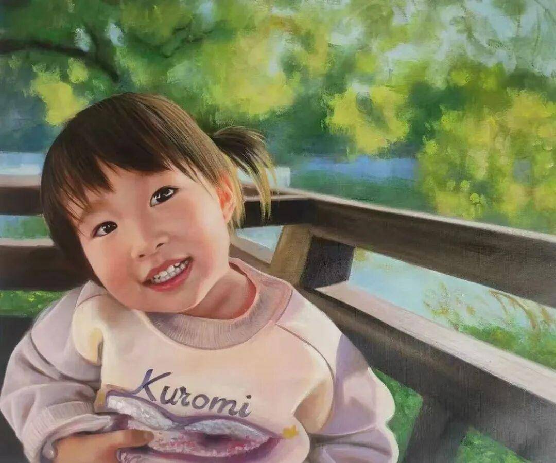 写实油画绘画表现手法,画面中的儿童,被赋予静止美感。通过孩子的形象姿态与空间布局构建,人物肢体语言呈现静止张力,眼神刻画与多层次色彩凸显人物活力,立体分明的轮廓,细腻笔触衬托孩童脸庞的稚嫩感。