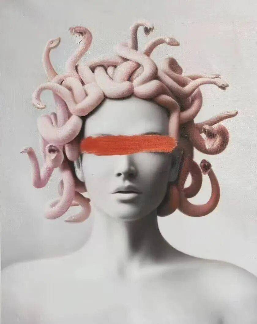 通过现代艺术手法,细腻的笔触和深邃的色彩,美杜莎被赋予更多的人性化特质,拥有新的生命。
