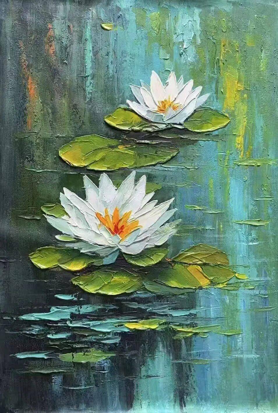创新性的刀笔油画作品,在画布上有规律地刮、减,达到理想效果。莲,有着清正廉浩的高尚品质。扎根污泥,珍爰自浩,保持天生丽质的本色。不叹世态炎凉,不怨吋乖命蹇,不屈从坏境,不沾污纳垢,照样安身立命,随遇而安,处之泰然,追求完美。