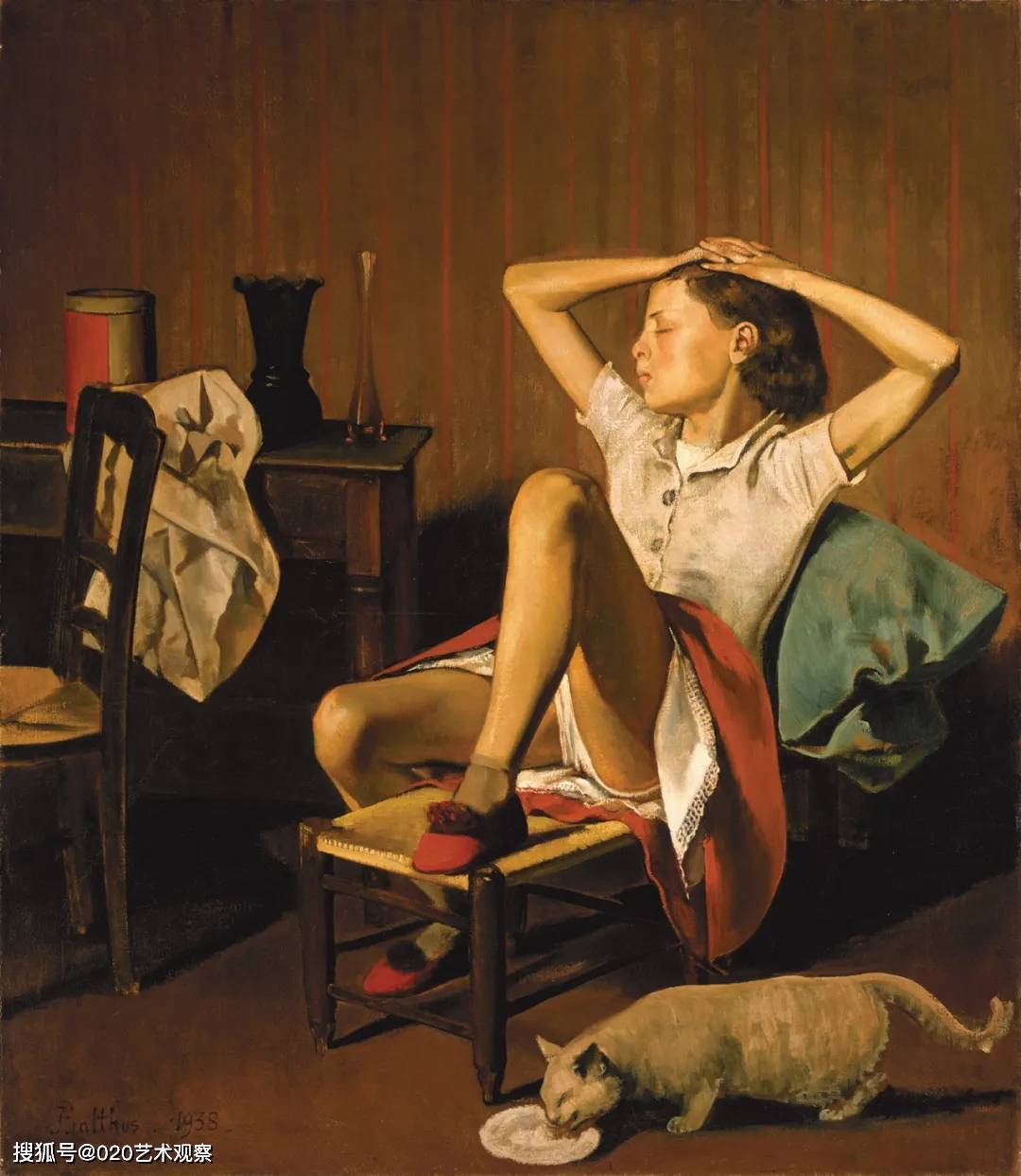 巴尔蒂斯作品融合古典主义构图与东方装饰性色彩,题材多涉及猫、少女及日常场景,画面常具神秘象征气氛。晚年隐居瑞士后创作色调更趋柔和,曾受中国庄子哲思及日本浮世绘影响。其逝世后被世界各大报誉为“20世纪最后的巨匠”,2001年9月至2002年1月威尼斯格拉西宫举办最大规模回顾展,展出250幅作品确立其美术史地位。1995年其画展首次在华举办,2021年北京798艺术区再现沉浸式体验展。