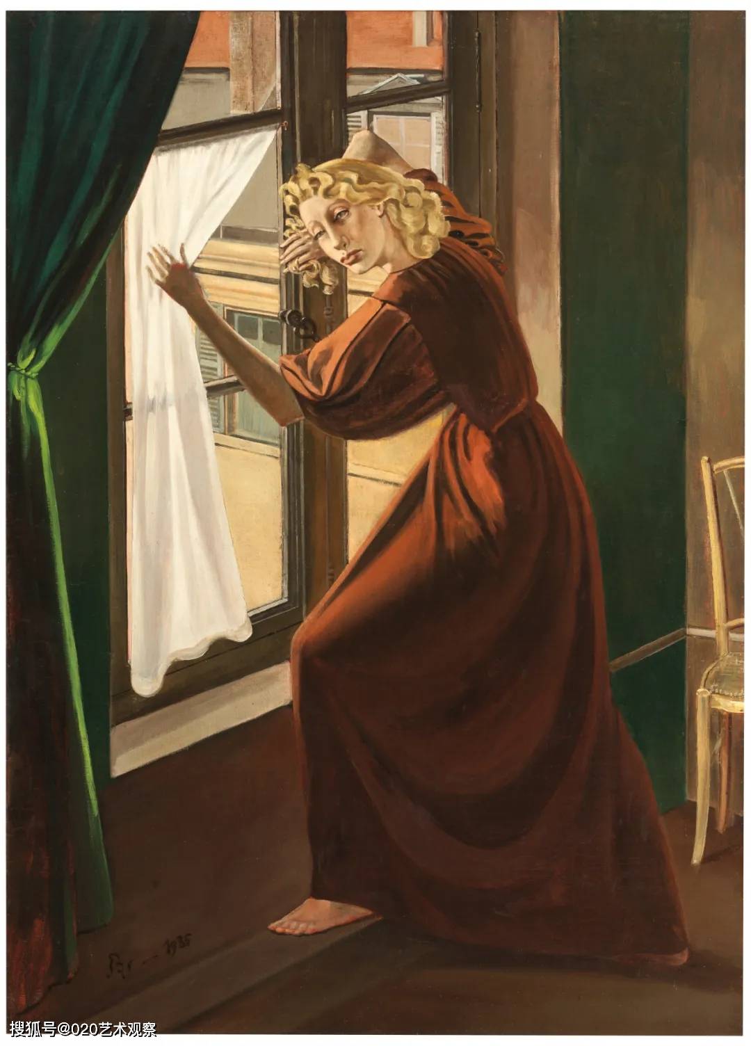 巴尔蒂斯(Balthus,1908年2月29日-2001年2月18日),原名巴尔塔扎·克洛索夫斯基·德·罗拉,法国画家,生于巴黎波兰艺术世家,父亲为美术史学家,母亲为画家。被毕加索称为“20世纪最伟大的画家”,以具象绘画闻名,代表作品包括《孩子们》《猫照镜子》《房间》等。