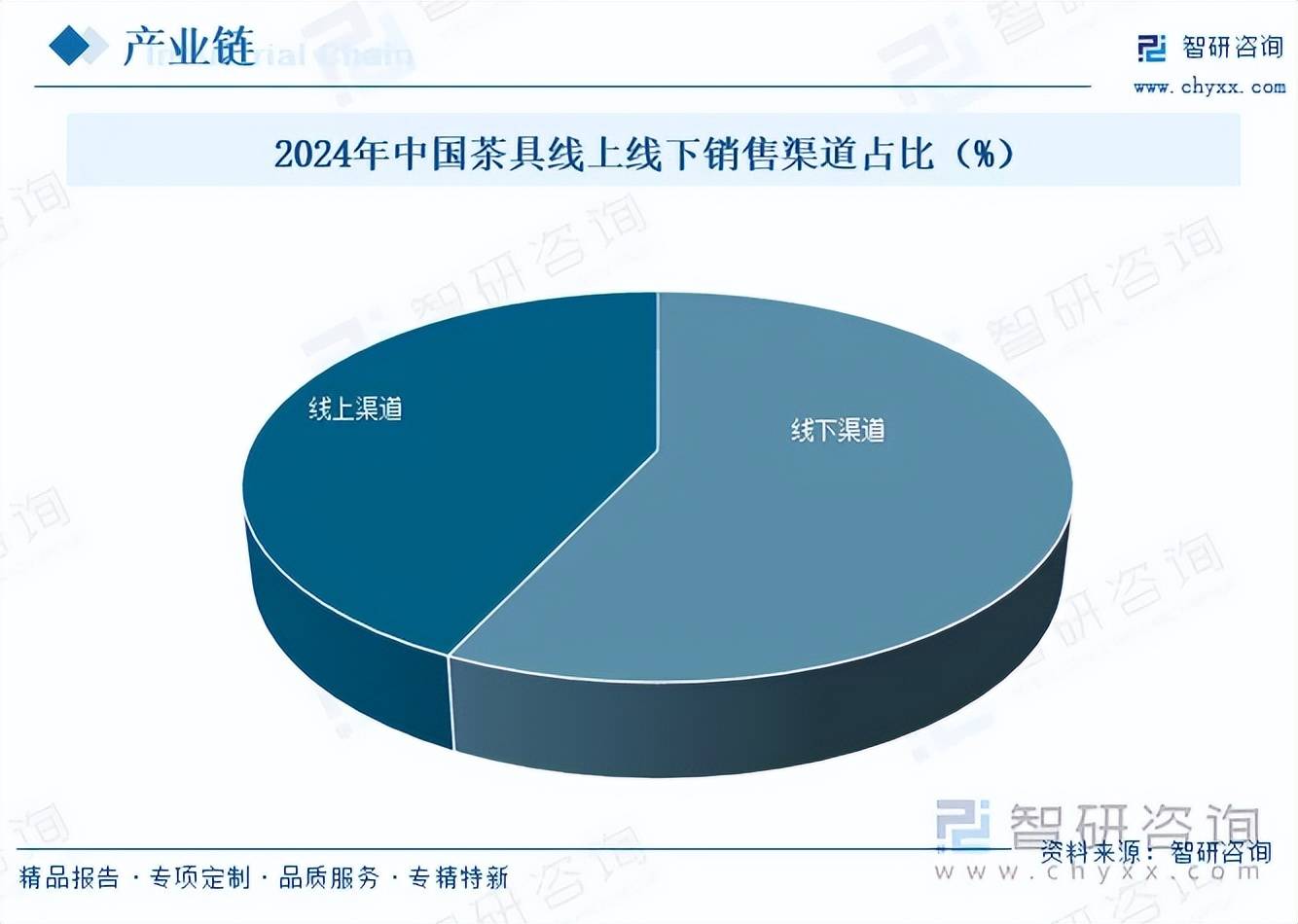 从下游销售渠道来看,目前,我国茶具销售渠道仍以线下为主,2024年占比超50%,线下渠道因能满足消费者亲身体验的需求,在高端茶具如名家手工紫砂壶、定制陶瓷茶具等销售中优势更加明显,像景德镇、宜兴等地的品牌旗舰店还会通过茶艺演示、制陶体验等活动强化用户粘性。而综合电商平台、品牌官网、直播带货等线上渠道是触达年轻消费者的关键路径,随着电商市场的发展,线上渠道已成为我国茶具重要的销售渠道之一。