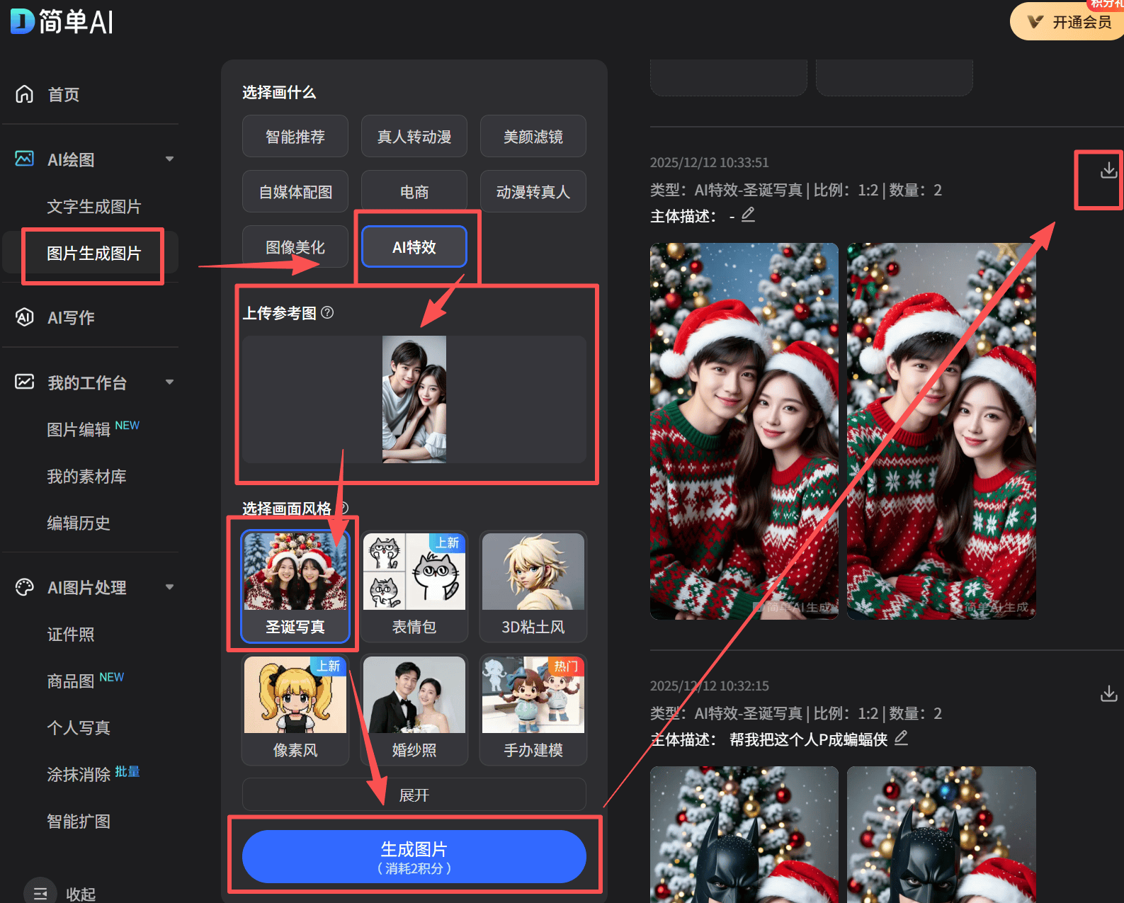 今年圣诞别再卷影楼排队了!用【搜狐简单 AI】特效,在家就能轻松拍出刷爆朋友圈的写真,细节质感吊打其他 AI 工具🌟 现在新用户还能多领 15 次免费生成机会,快冲鸭!