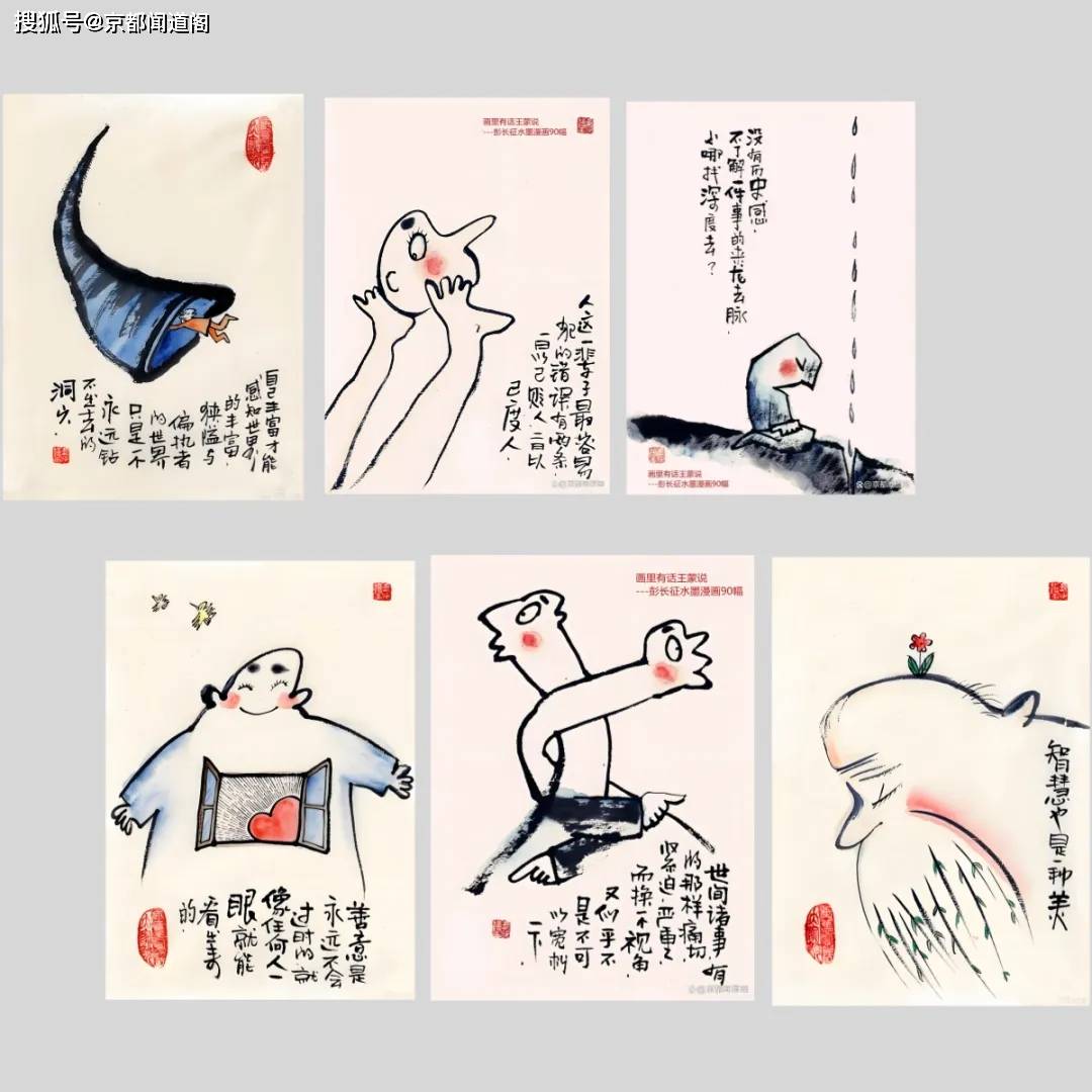 彭长征使用的“哲理水墨漫画”形式是关键桥梁。它打破了传统文人画与漫画的壁垒,这种融合使得作品既具有形式美感,给人启迪和回味,符合当代读者的审美需求。