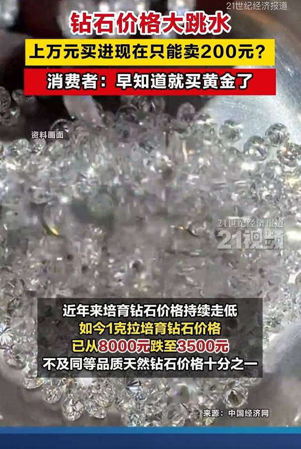 有媒体报道,十年前,有消费者花费十万元购买了一枚一克拉钻戒,如今她咨询多家回收商得到最高估价不过三万元。一位十年前花费1.8万元购买钻戒的安徽女子在社交平台分享,如今仅能获得180元的回收价,贬值幅度高达99%。