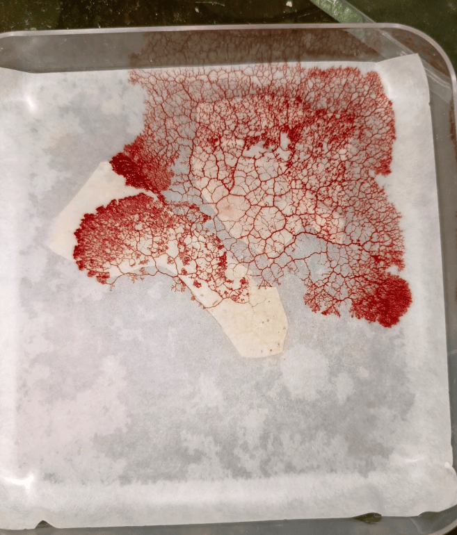 营养阶段黏菌生长在阴暗潮湿的地方,它们到处爬行,通过吞噬食物颗粒来获得营养。