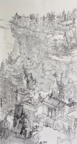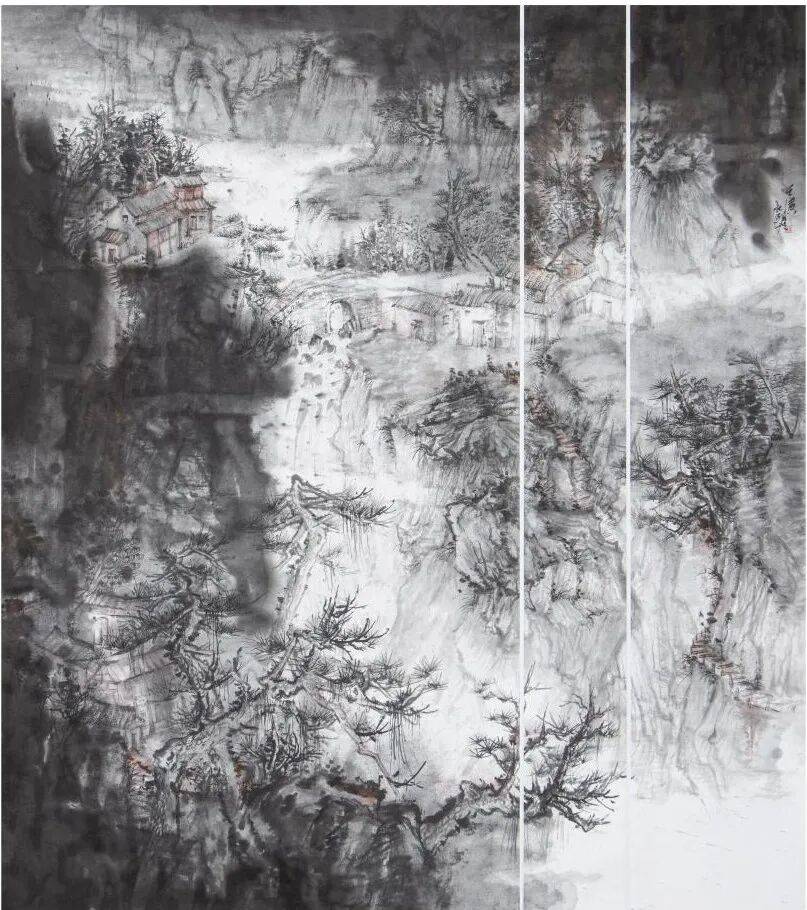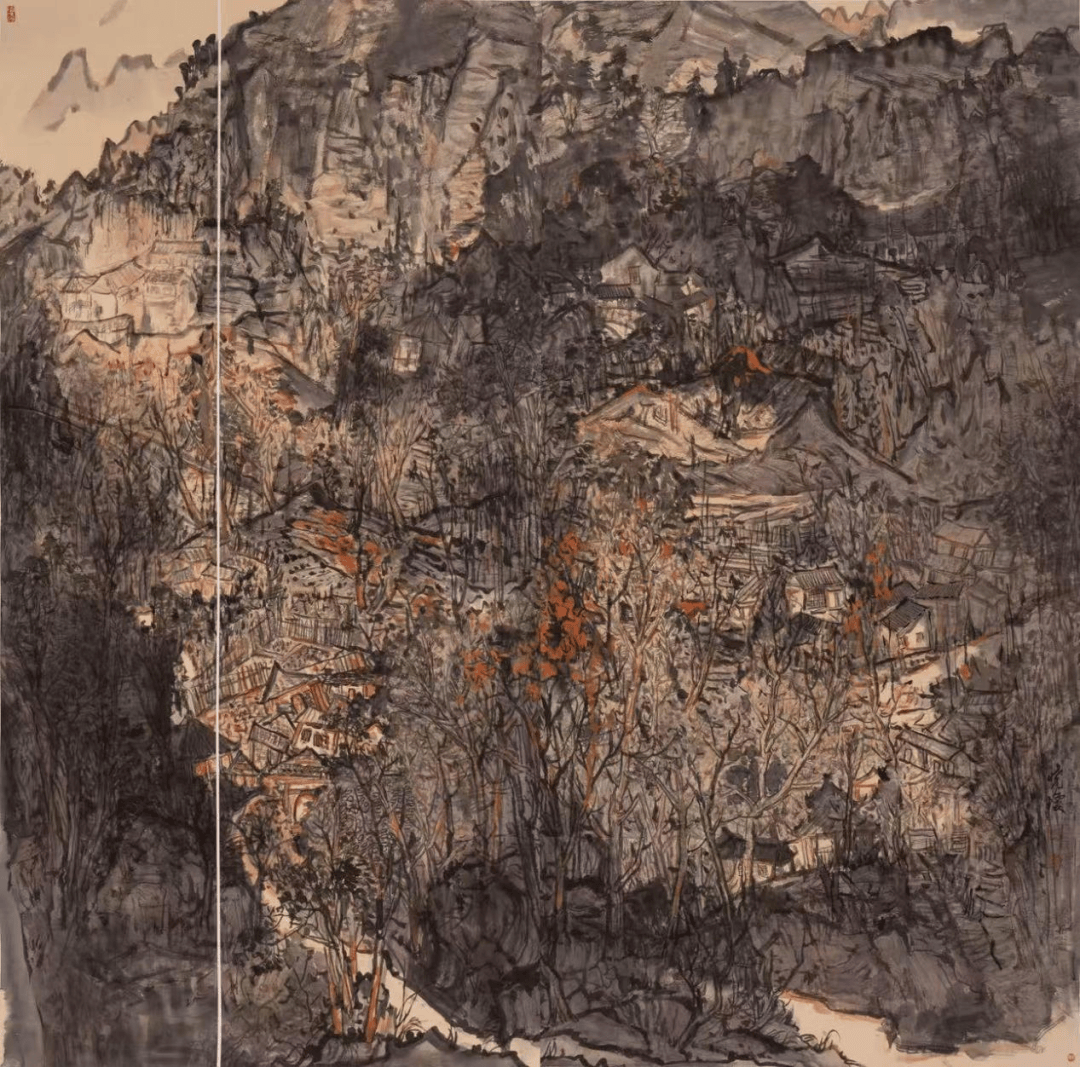 杜跃 崖上人家 180×200cm 中国画 2023年