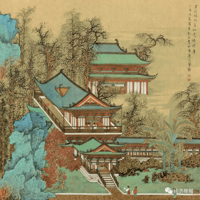 游新民 翠深开断岩红远结飞楼 66×66cm 纸本设色 2017年