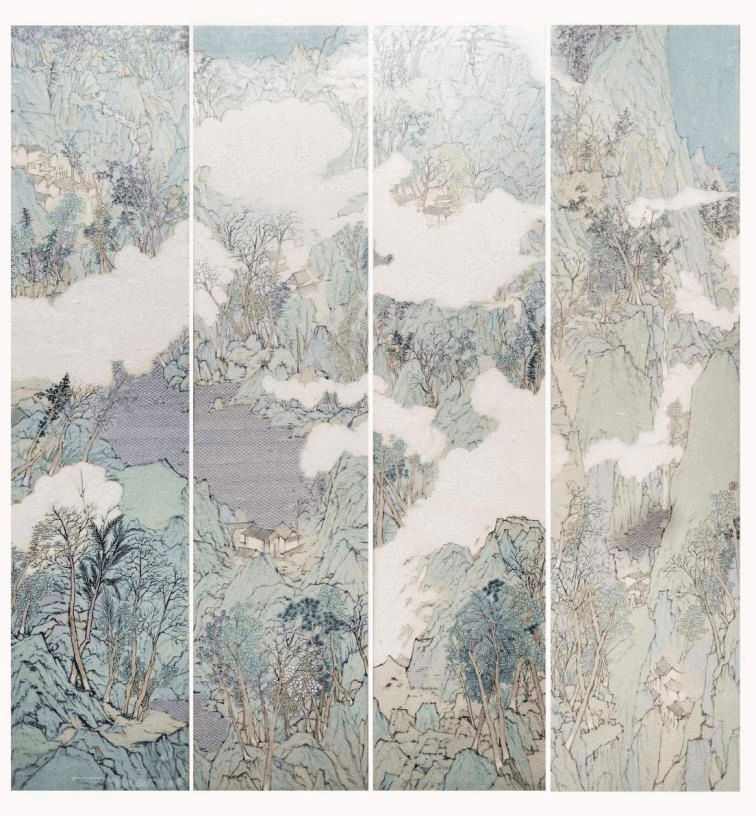 罗俊 清霄 33×150cm×4 纸本设色 2020年