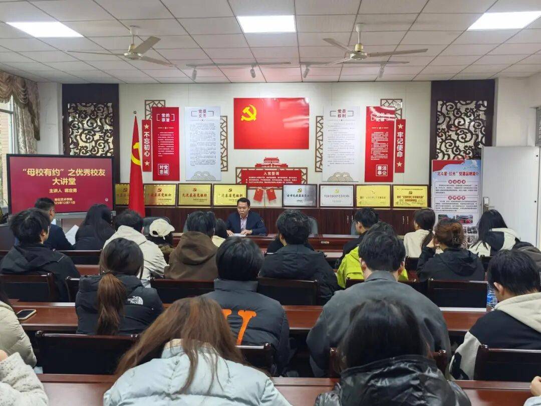 2025年12月11日上午10时,江西工程学院抱石艺术学院“母校之约”之优秀校友大讲堂在艺术楼202会议室如期举行。本期讲堂特邀优秀校友、东莞市泽高实业有限公司董事长蒋定勇先生重返母校,为2024级音乐表演本科1班与2024级视觉传达设计本科2班的同学们带来了一场主题鲜明、内容丰富的分享会。