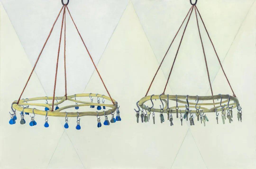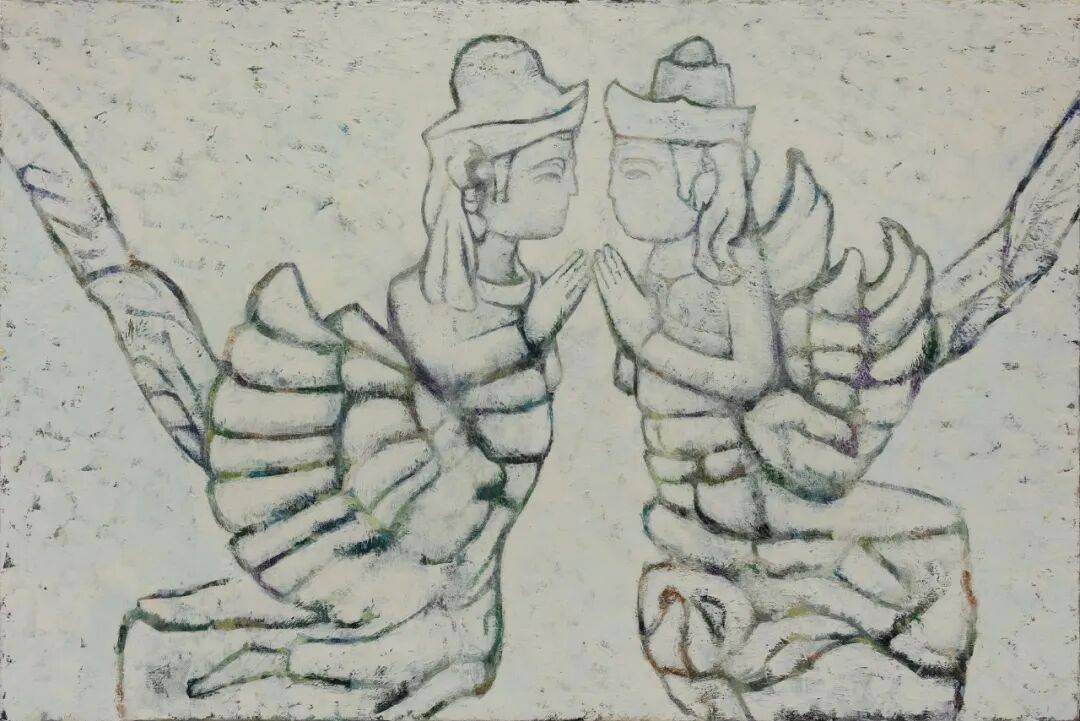 我请求退回“关键词”的说法。前些年(2015-2020)我常画一对一对的绘画,原因有几个,有时起稿完发现画得不错,但又想是不是没画完,舍不得覆盖起稿便索性再画一张;有时画完觉得没画够或是还有其他表现方式,便再画一张,当一对一对挂在墙上,不免有对联对仗的观感,所以用总结性的关键词来概括,但它很快又成了启示性的开关词,便是它们进入了一个“书信”的状态,我发觉在不同画面不同时刻,自己竟也开始分身,有如不同角色的人在做同一件事。所以我将书信的状态移至绘画形式中,一张画给另一张画写信,收到信的画再回一封信。它们有了口头问答,书面往来的性质,甚至拥有了新的主体。