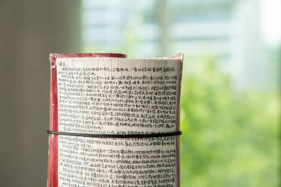 在工具书《育儿百科》的书口处给亡母写信,汇报自己的家庭和工作情况。