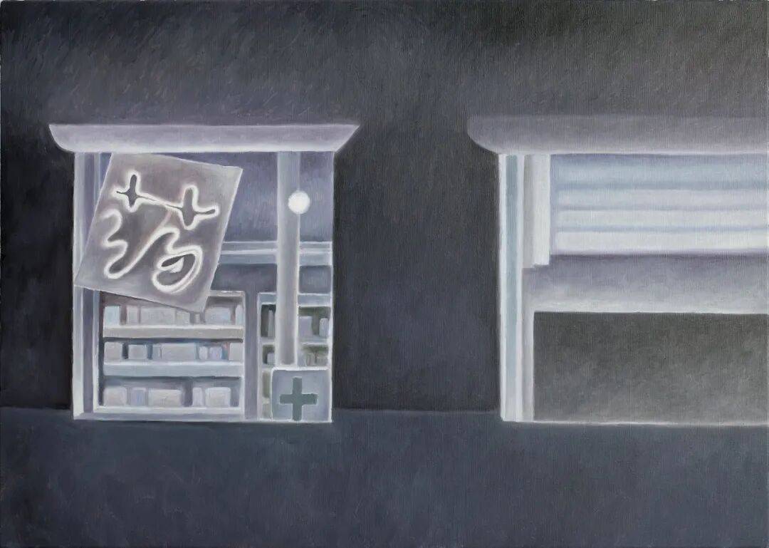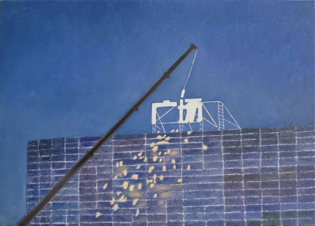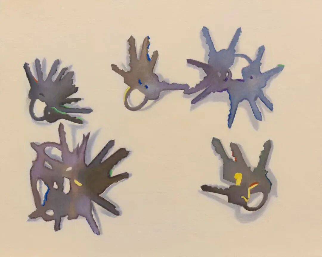 你总结的没错,“让议论本身成为抒情手段”。我的“字词”创作稍复杂,在2017~2020年,我画了一些关于文字的绘画,开始是被意义的吸引和与场景共鸣,继而演化为对认知的质疑,想在获得意义后又脱去意义的衣裳,试图得到某些平等的字词。有意义的是,我的努力失败了,最后,它们成为了我与读者共享的一段命运。对于韵脚,实际是不太可能实现的课题。“以音入画”是我的语言错觉,是叙述时形色、结构的蹩脚经验和动作,是羞涩又隐秘的方言。对,方言,是他人发不出的声音,是卡顿的表达和转译,是面对绘画、语言、形象这样的大词时,你以什么结构,如何组织它们的第一直觉。