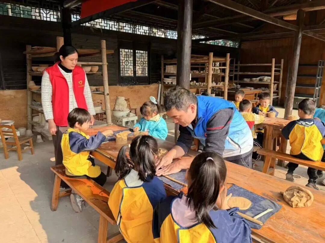 为深入贯彻落实中华优秀传统文化传承发展工程,丰富幼儿美育课程体系,让非遗文化在幼儿心中播下传承的种子,12月8日,青原区天玉镇新时代文明实践所再度携手全省“四个100”文化导师、市级非遗传承人张立早,联合天玉中心幼儿园,在临江古窑举办 “传承陶艺文化 体验创作快乐” 趣味陶艺主题活动。活动以“陶艺蜗牛”为创作核心,让孩子们在指尖与泥土的亲密互动中,沉浸式感受中华传统工艺的独特魅力,点亮非遗传承的童年记忆。