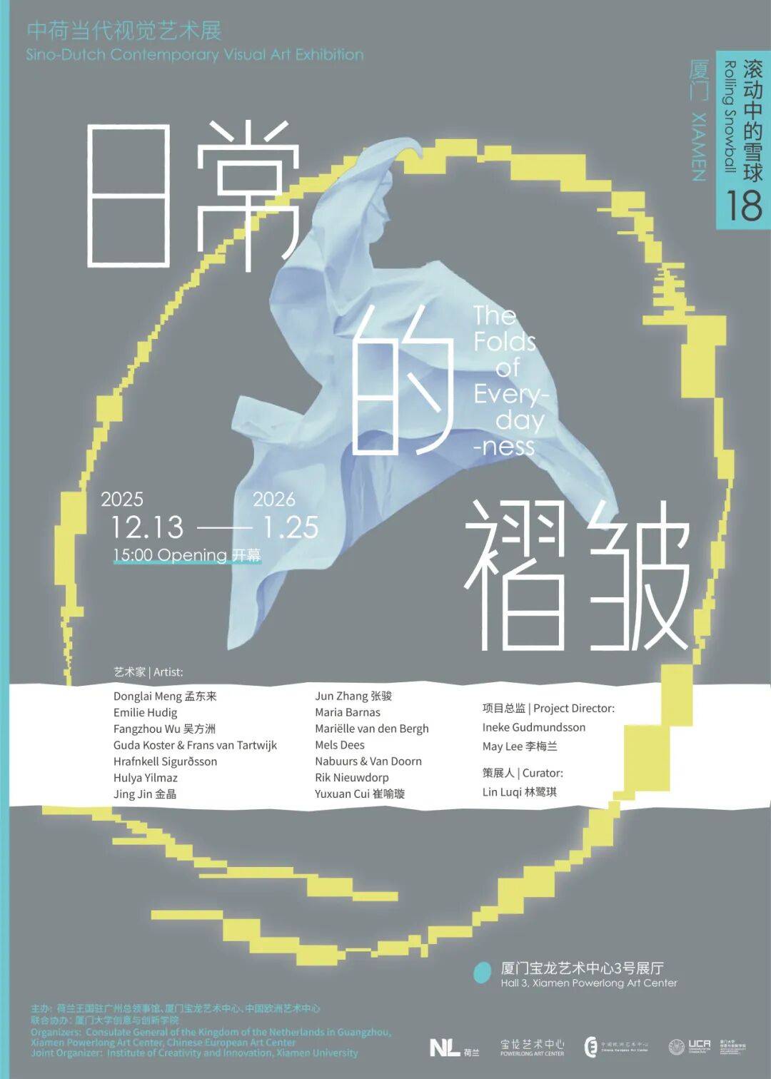 2022年,《滚动中的雪球14》以“你好吗?”的温情叩问,在厦门宝龙艺术中心搭建起跨文化对话的舞台,多元艺术形式碰撞出的思维火花;2024年,《滚动中的雪球17:在建中》再度登场,以“在建景观的过程与状态”为核心,将创作的动态张力与未完成的美学意趣娓娓道来……2025年,雪球再次启程。来自中荷两国的艺术家将围绕“日常的褶皱”这一主题,展开一场精彩的视觉思辨。本次展览为公益项目,免费向公众开放。
