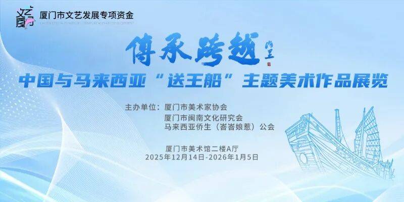 “传承·跨越”中国与马来西亚送王船主题美术作品创作与展览开幕式即将于12月14日在厦门市美术馆举行,展览入选厦门市文艺发展专项资金资助项目,画展也将在马来西亚巡展。本次展览既是一场美术盛会,更是深化中马两国非遗保护合作、推动海洋文化传承与创新发展的重要实践。