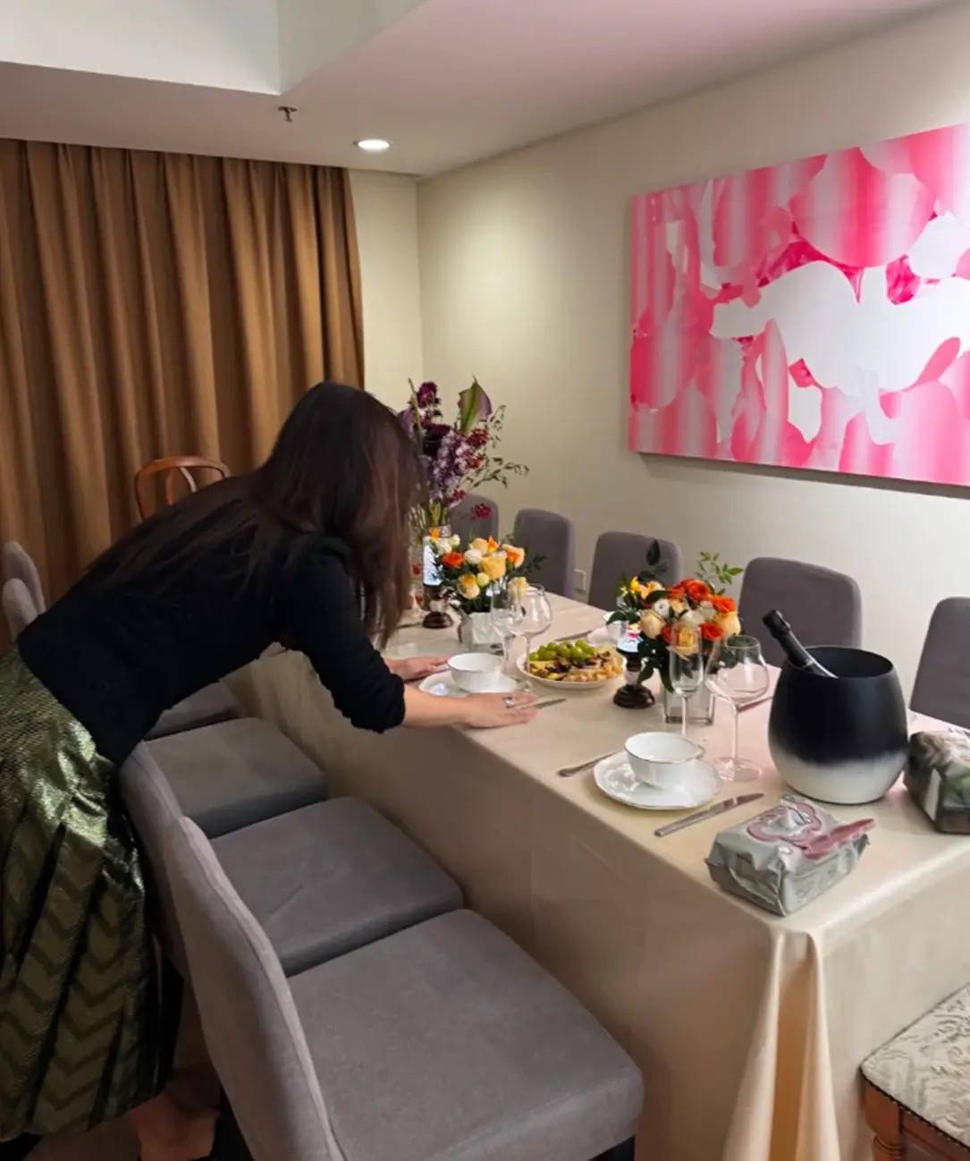 朱珠是很懂浪漫的人,朋友来家里聚餐,老公负责掌勺、她就负责摆盘,把餐品摆放的好看又精致。她还安排了香薰,让这顿饭吃的更舒心。原来别人聚餐,是这么有情调的,而不是单纯的吃饱吃好着么简单。