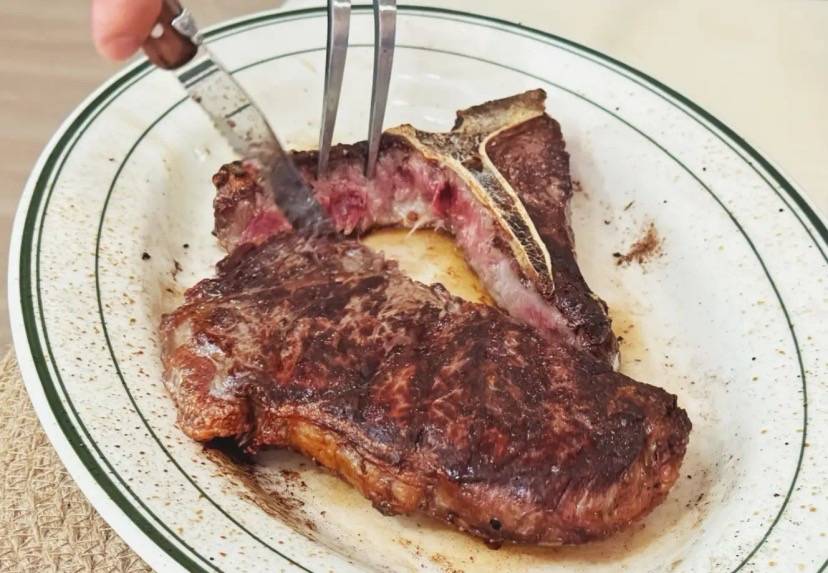 外焦里嫩的牛排,小朋友也喜欢吃。王昀佳也经常给女儿做饭,爸爸的手艺非常棒,一家三口的日子简单幸福快乐。
