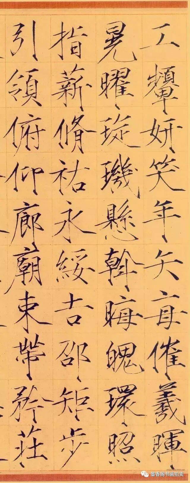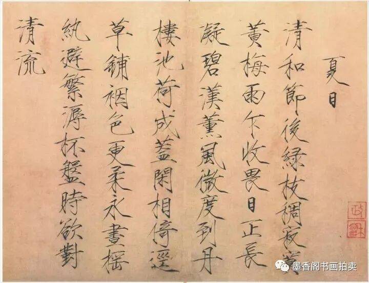 《夏日诗帖》是书于政和年间,经典瘦金名帖代表作,流传九百余年,至今保存完好,现珍藏于故宫博物院。是瘦金小楷的一块玲珑剔透光芒四射的完璧!古人评论瘦金体云:“横画收笔带钩,竖画收笔带点,撇如匕首,捺如切刀,竖钩细长而内敛,连笔飞动而干脆”,是对瘦金书特色的高度概括。又有赞云:瘦金书“金镂之妙,细比毫发,殆与神工鬼能,较奇逞并于秋毫间。”对瘦金体书法的高度艺术成就推崇备至。上述特点在此贴中可谓体现的淋漓尽致,毫无遗憾可言。
