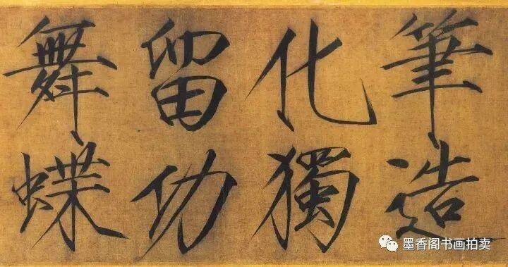 宋徽宗《秾芳诗帖》大字楷书,每行二字,共20行。这是赵佶瘦金体的代表之作。清代陈邦彦曾跋赵佶瘦金书《秾芳诗帖》:“此卷以画法作书,脱去笔墨畦径,行间如幽兰丛竹,泠泠作风雨声。”既是对这一诗帖的评赞,也是对“瘦金书”的艺术效果的很好概括。