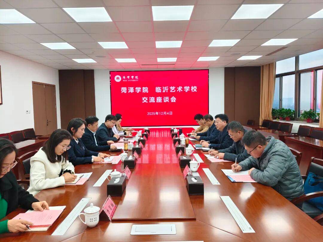 双方在菏泽学院会议室举行了座谈。座谈会由菏泽学院音乐与舞蹈学院党委书记李谨辰主持。菏泽学院党委委员、副院长富元斋出席会议并致辞,对临沂艺术学校同仁的到访表示热烈欢迎,并系统介绍了菏泽学院的办学历史、学科特色以及音乐与舞蹈学院在人才培养、艺术实践与社会服务方面取得的成果。他期望通过此次交流,双方能够优势互补,拓展合作空间。