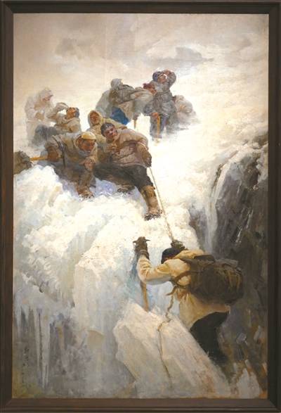 他的主题创作指导方法步骤明确。第一步是引导学员从生活中寻找一个适合表现的、不大不小的主题,要求既能反映社会主义现实,又要融入个人真挚情感。这很像我们现在研究生的毕业论文开题,需要用草图、写生等支撑材料与马克西莫夫进行开题答辩。例如,靳尚谊最初设想的《毛主席视察黄河》,因题材过于宏大、与个人生活有距离而被马克西莫夫建议调整,后经反复摸索,才最终选定了中苏联合攀登慕士塔格峰这一更具操作性、且极为贴合时事的题材。值得注意的是,马克西莫夫在题材上还是很宽容的,他同样接受学员以肖像、风景等非情节性题材作为毕业创作。