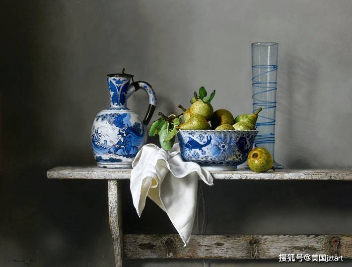 沃尔特·埃尔斯特是一位技艺精湛的画家。他的作品常被描述为“超写实主义”,但这个词其实并不足以概括他的画作。超写实主义往往追求惊人的精确度和视觉错觉,而埃尔斯特的作品则更注重诗意的张力。他的笔触柔和,几乎难以察觉,赋予画中对象——锈迹斑斑的大锅、樱花、一碗榅桲——一种微妙的光泽和存在感。