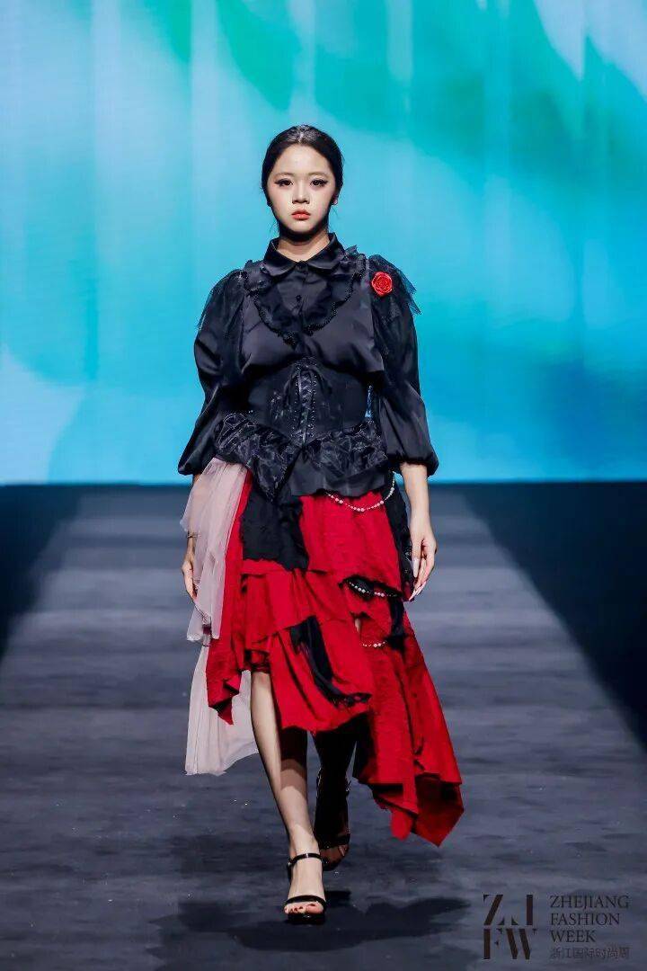 案例有很多,近期一个比较典型的是与我们与西纳维思(杭州)服装服饰有限公司的合作。他们不仅赞助了本次秀场的部分服装参加省赛,其中一些合作作品也获得了不错的奖项,我们的合作不止于赞助参赛。比如,去年我们与该公司共同举办了首届“花与珍珠匣”洛丽塔服装设计大赛。在整个设计过程中,学生会吸纳企业的专业意见,这让学生在发挥创意的同时,也能深刻理解企业对服装专业人才的真实需求。通过这种深度协同,最终产出的作品和取得的成果都非常不错。