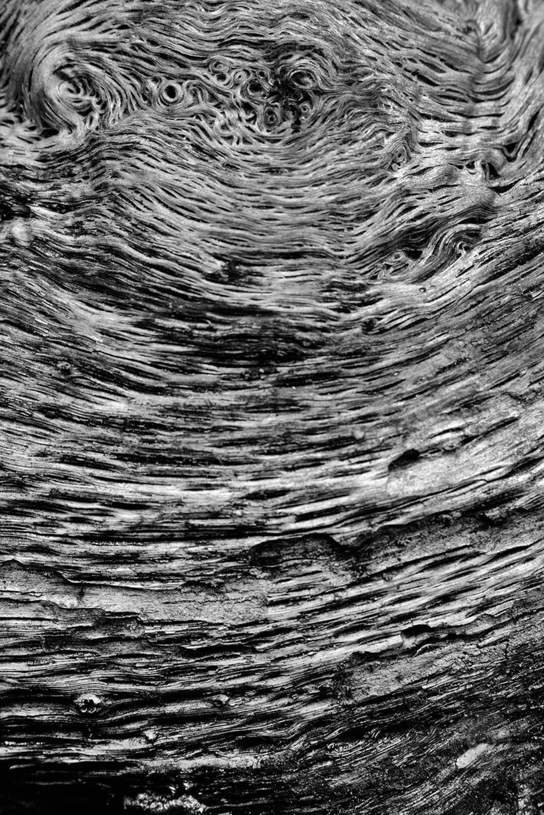 宇宙图是一个系列,灵感来自我最近与雕刻艺术世界的相遇。它诞生于撒丁岛中心的巴尔巴贾。照片的主题是裸露的木材,处于腐朽状态。这个选择中的镜头实际上是"发现"的图像——对自然智慧及其复杂回声的致敬。在其中,我寻求与我的土地及其黑暗神秘民间传说的联系。叙事遵循恒星生命周期的创造和不可避免的结束,通过摄影媒介与绘画风格元素之间的对话:涟漪变成笔触,有时迅速精确,有时暴力扭曲;点和线在画框内分割和争夺空间,就像在画布上一样。