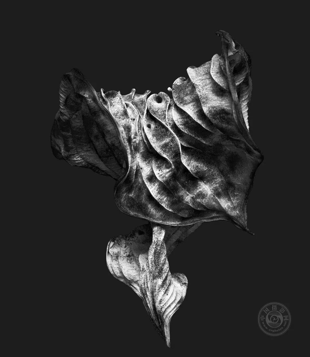 自然本质上是形成性和塑造性的。当一个人拍摄这些已经形成的事物时,摄影相对而言成为了第二次创造。"艺术来自艺术家的潜意识——对印象的无意识处理,然后在画布、相纸或文学中找到表达。当它成功地将艺术家心灵或情感的深刻反思在最终图像中可见时,艺术品——无论是绘画还是摄影,两者本质上都是二维的——获得了第三维度:所谓的"穿透"或"宣告"。在这一点上,主体的存在、本质或存在本身对观者变得可见和可感知。对我来说,我的照片——正是通过它们强烈的隔离和抽象——就像一个焦点。不仅仅是光的焦点,而是精神的焦点,对生命更深维度的一瞥。这些照片既是创造又是生命。我在树叶中看到的不是简单的死亡、坠落的物体,而是充满活力的新实体。它们干燥的表面具有在纯自然光下闪耀银色的独特品质,仿佛它们是天使。我更喜欢以大幅面展示这些作品,让它们作为真正的实体站立,与人类观者平等出现。此外,它们精细的结构在每次观看时都邀请新的发现。
