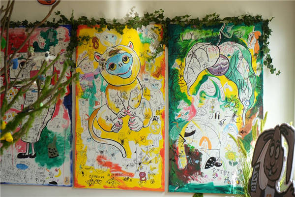 许峰与孩子们一起布置“梵净精灵童话乐园”