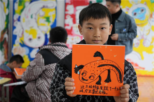 “太平完小离梵净山那么近,孩子们喝着梵净山的水、吃着梵净山的粮长大,却有很多人没真正走进过这座家乡的圣山。” 正是这份对家乡的深情,让他萌生了带孩子们“把心中的梵净山创造出来”的想法。扎根乡土,方能绽放美育之花。此次共创项目以江口县标志性的梵净山为创作原点,深挖在地文化资源,将金丝猴、娃娃鱼、鸽子花、蘑菇石及兔想想等独属于梵净山的自然生灵与地质奇观,转化为孩子们触手可及的艺术素材。在四天的共创时光里,许峰摒弃“单向授课”的传统模式,以“人人都是艺术家”为核心理念,引导孩子们自主观察、大胆想象。孩子们拿起画笔勾勒心中的梵净精灵,揉捏彩泥塑造灵动的山野生灵,从画作到雕塑,每一件作品都饱含着大山孩子对家乡的质朴热爱与天马行空的创造力。创作之后,许峰还与孩子们一同动手布置教室,将一件件充满童趣的作品陈列其中,原本普通的教室摇身一变成为充满奇幻色彩的“梵净精灵童话乐园”,甚至乐园的匾额,也是太平完小的学生自己书写及装点,许峰期望在大山深处,与孩子们一起创造一座乡村迪士尼乐园,让艺术实践真正走进孩子们的日常。