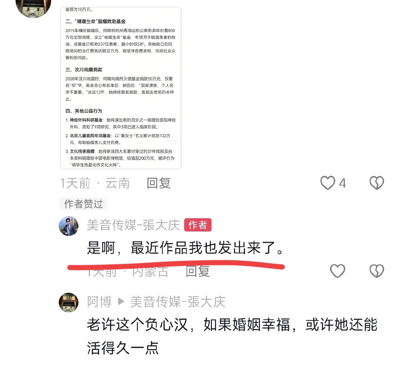 在他的留言区底下有网友晒出了她生前曾为公益捐助过那么多钱,而且都是低调捐助不留名