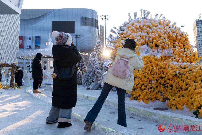 这一融合了冰雪与花艺的景观,既契合了“冰城”的冬日特质,也以温暖的色彩为寒冷街头增添了浪漫气息,成为近期城市里的一道人气风景线。
