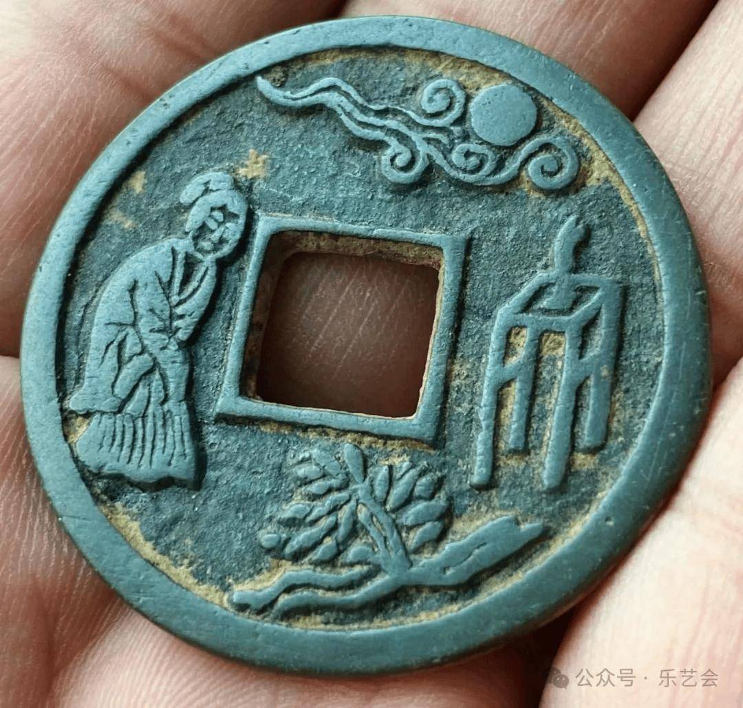 宋代前后的花钱中有一枚十分具有浓厚风俗,丰富人文信息的品种,正面是妇人祷月,反面是宽泛婴戏。今天我们来粗粗探究一下。