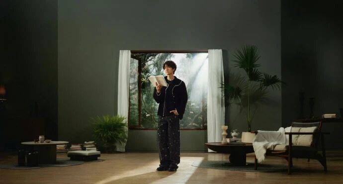 他没硬摆时尚 pose:拿着相机的专注、倚坐时的随性、指尖轻碰珠宝的自然,都像 “刚穿了新衣服的少年,在自己的空间里自在待着”—— 不是 “拍时尚写真”,是 “记录少年和他装着四季的温柔空间”。