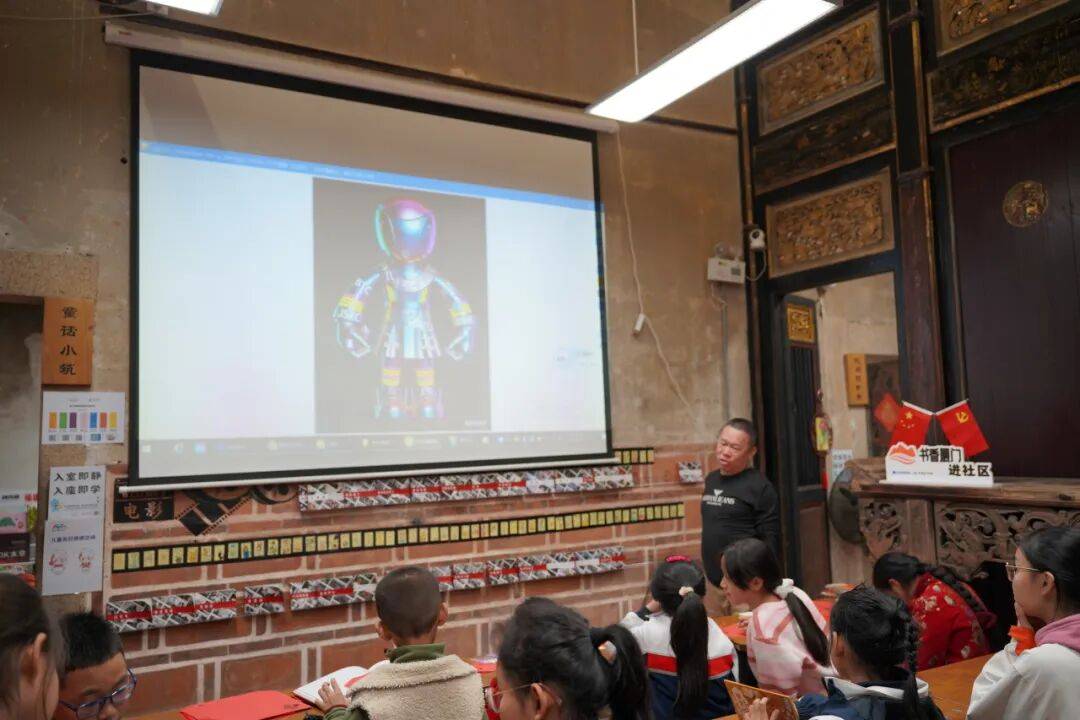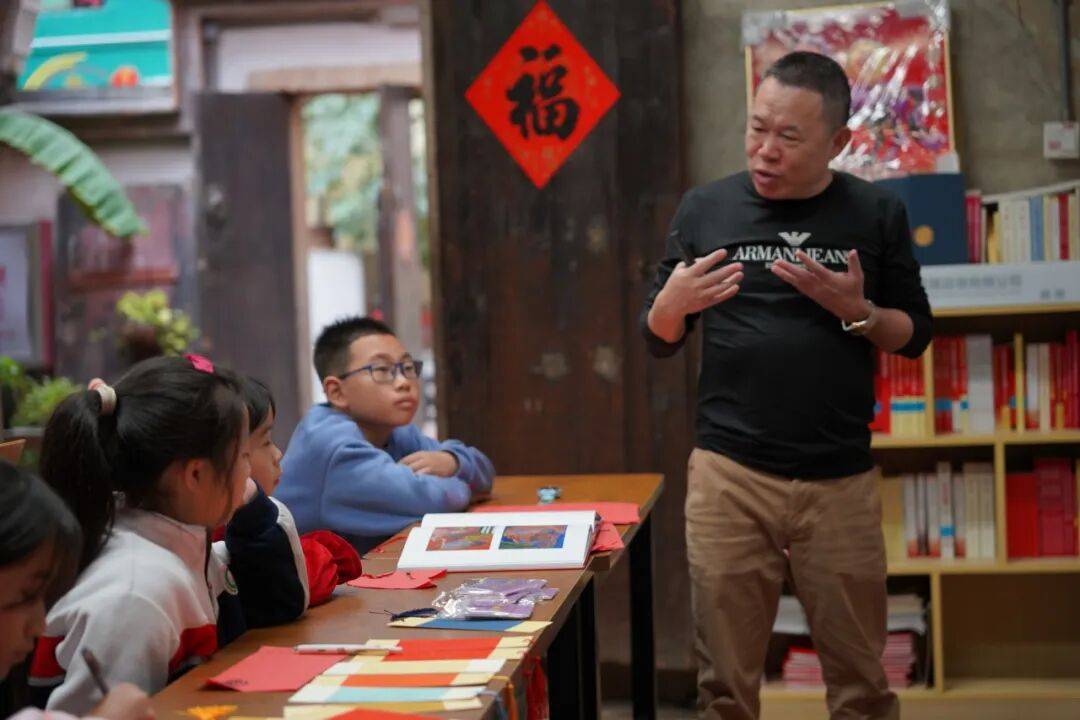 “我小时候也喜欢乱涂乱画,从裱画修画起步,慢慢才找到自己的艺术方向。”他指着投影里的作品,用孩子能听懂的语言解读创作理念,从色彩搭配到构图思路,每一个细节都藏着对生活的热爱。