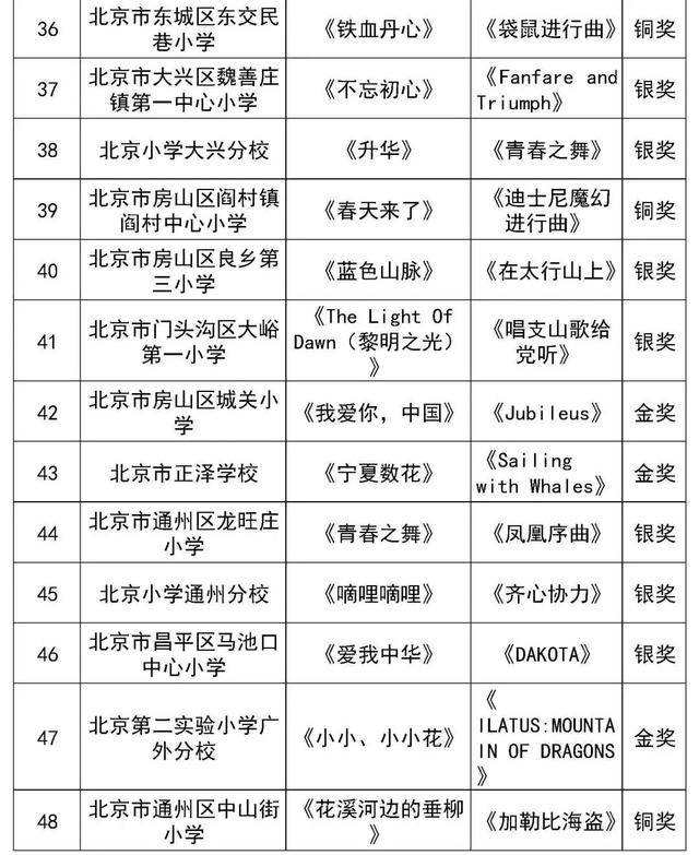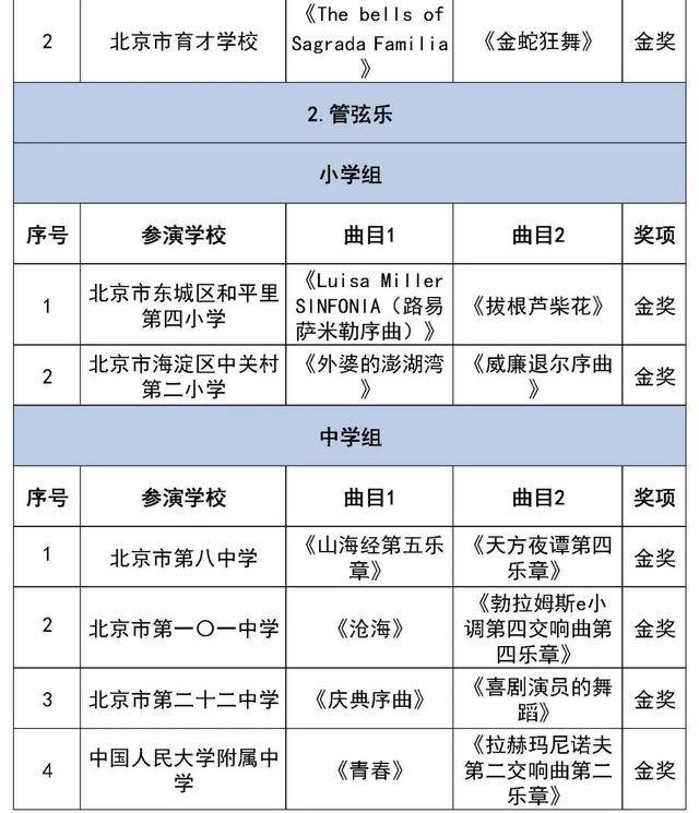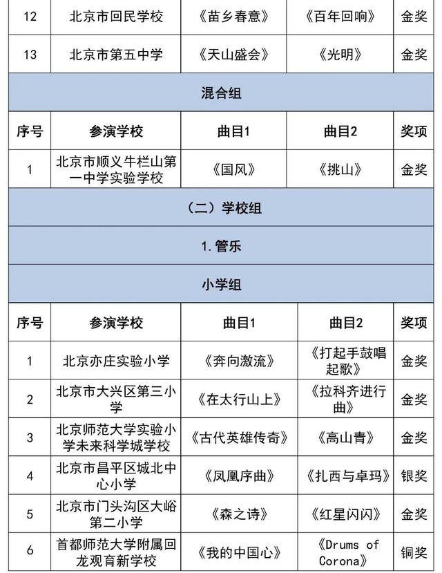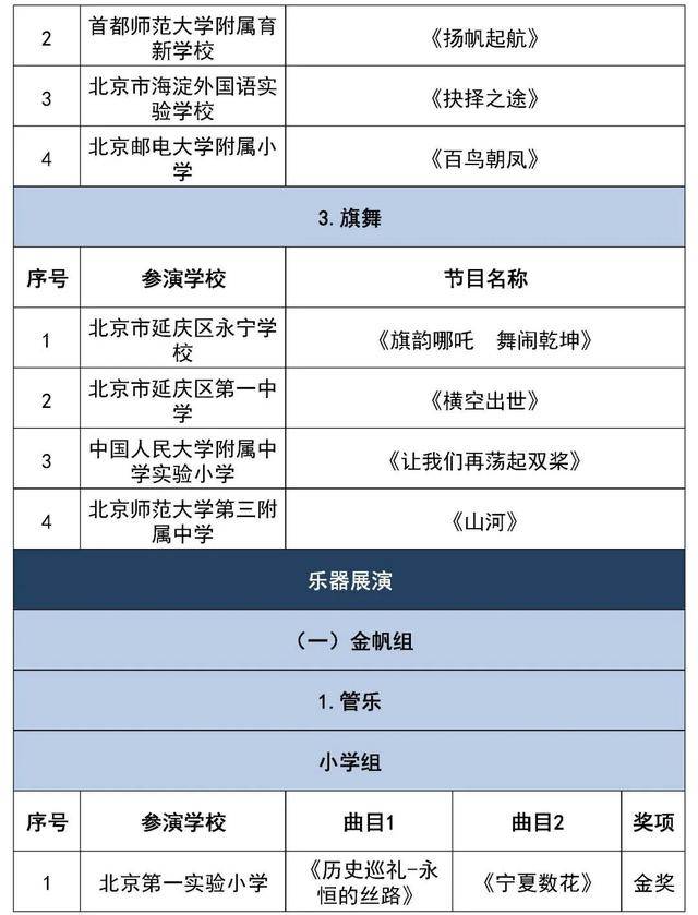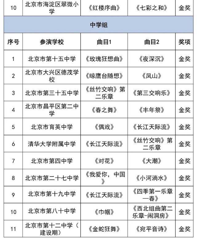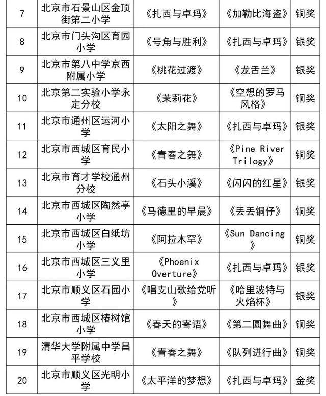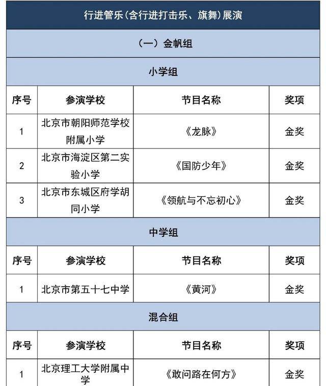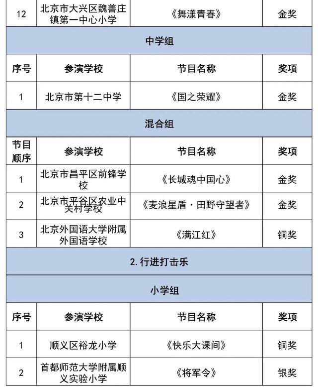 北京市第二十八届学生艺术节行进管乐、器乐展结果