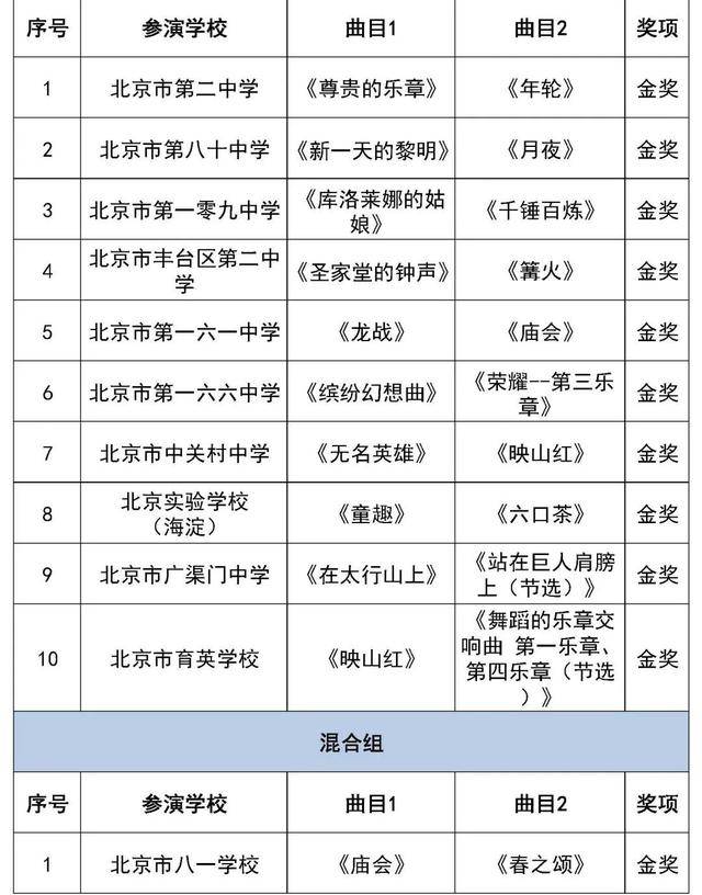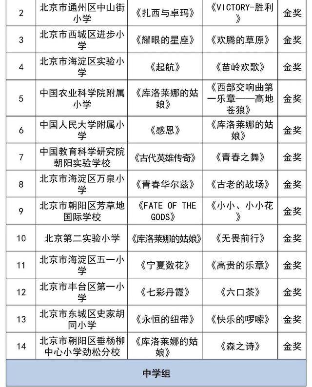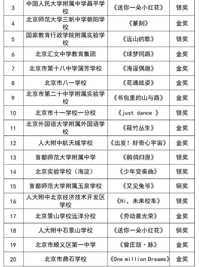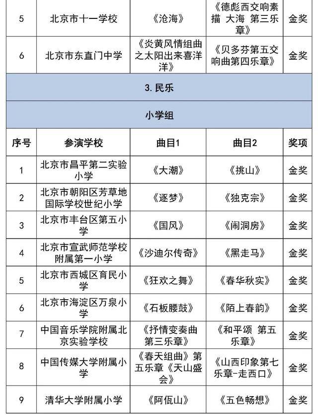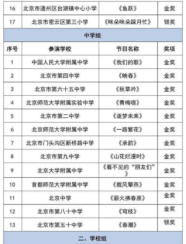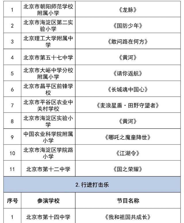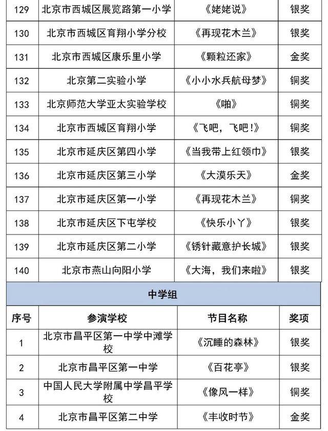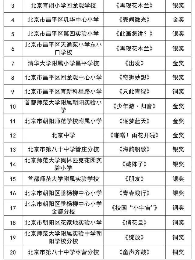 北京市第二十八届学生艺术节行进管乐、器乐展结果