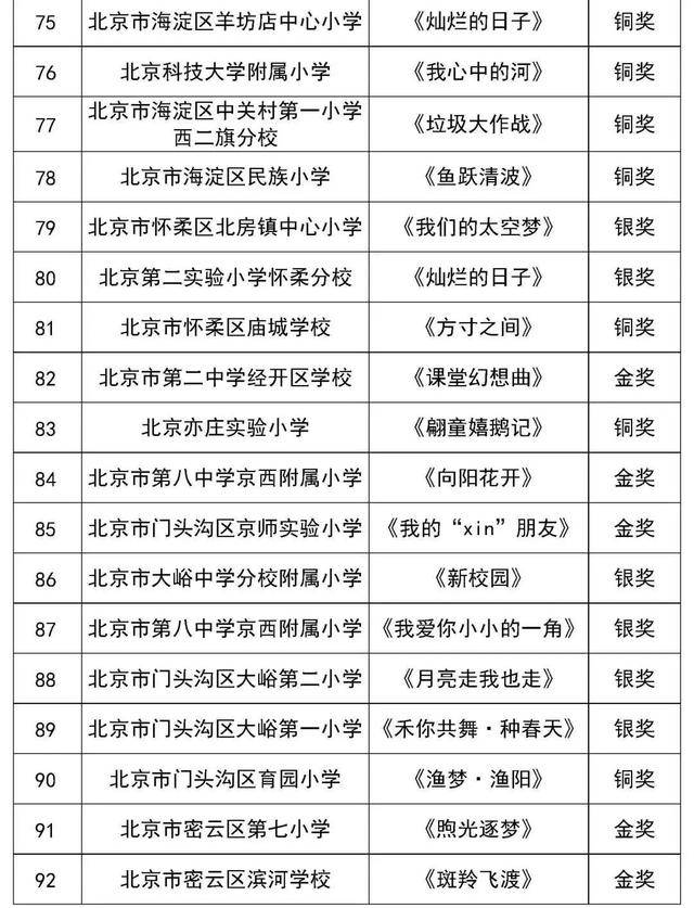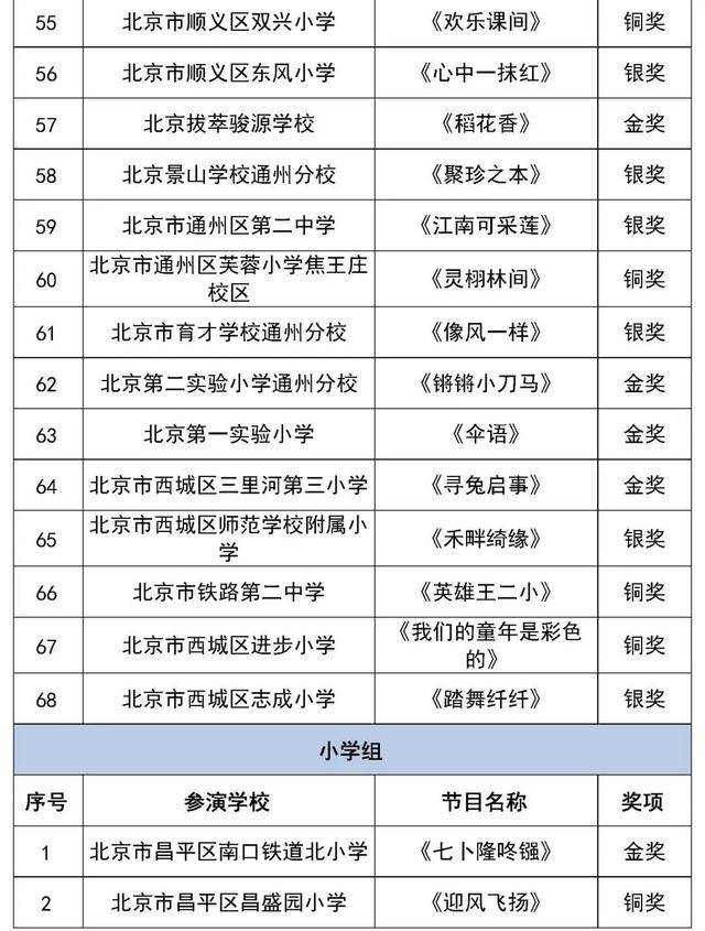 最终经市区两级现场展演评出金奖节目137个、银奖节目155个、铜奖节目95个、优秀原创作品奖105个。快来看看有你的学校吗?
