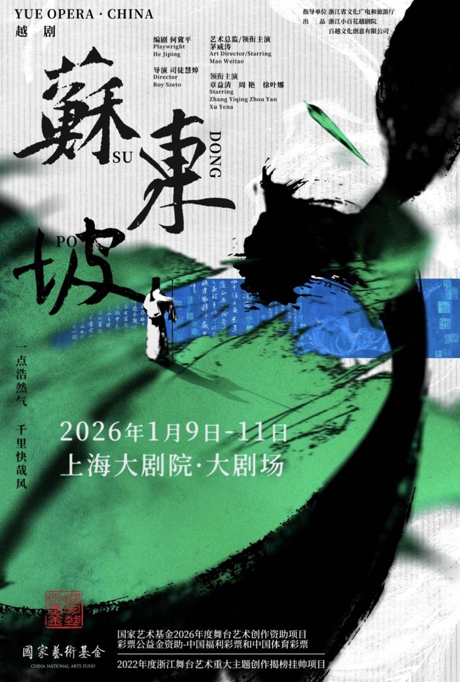 近日,由浙江小百花越剧院、百越文化创意有限公司联合出品,国家艺术基金资助、浙江省舞台艺术重大主题创作揭榜挂帅项目——越剧《苏东坡》在杭州蝴蝶剧场完成跨年首演。该剧由金牌编剧何冀平与香港导演司徒慧焯联手打造,是国家级非物质文化遗产(越剧)代表性传承人、中国越剧界唯一“梅花大奖”获得者茅威涛阔别舞台十年后推出的又一力作。2026年1月9日至11日,该剧将以“老带新AB组”模式登陆上海大剧院。