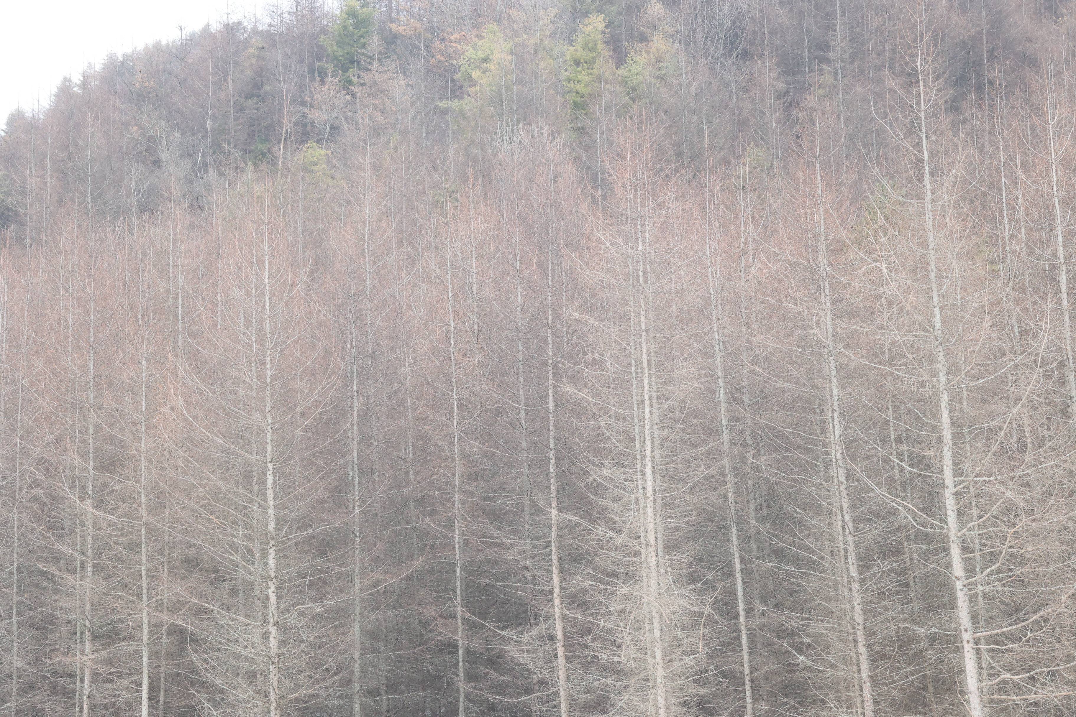 树木褪去了繁华的外衣,只剩下光秃秃的枝干在寒风中瑟瑟发抖;